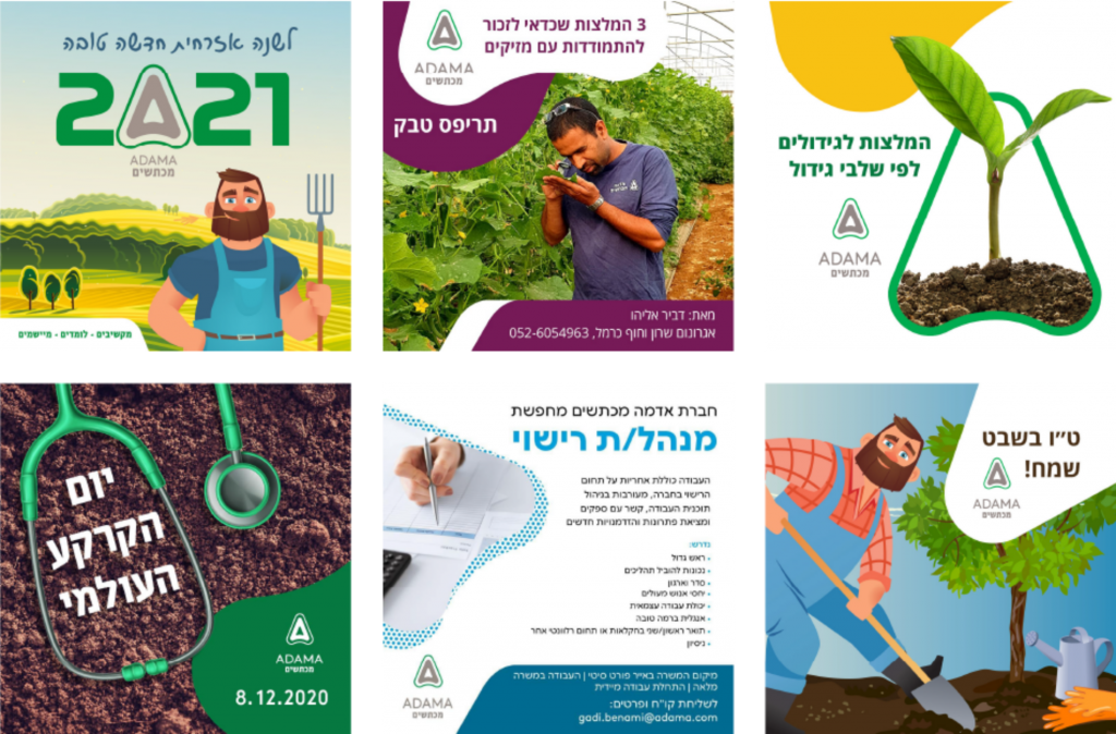 For the Adama Makhteshim company, I was responsible for all the various design works designing; posts, brochures, ads, catalogs, exhibition walls and materials for their international website.