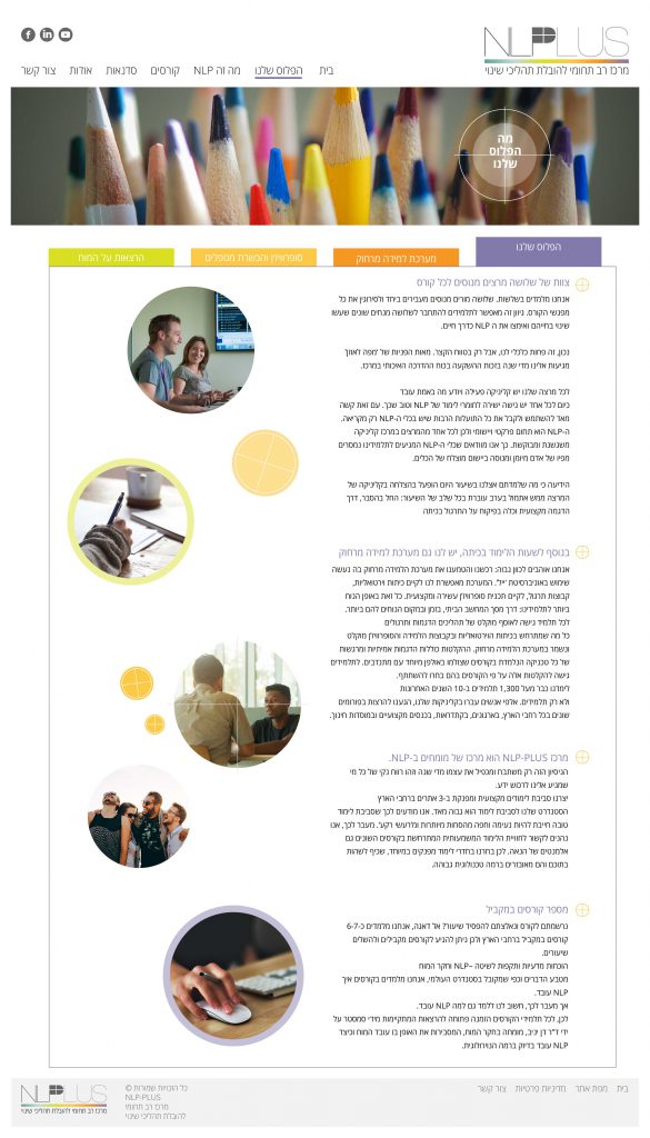 NLP is a personal development and psychotherapy method. The color theme of the existing site is blue, and I wanted to use bright and worm colors since the website deals with emotions and people.